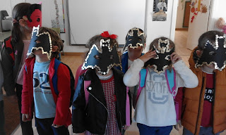| Aproximándose a data do Samaín, pensamos que era convinte ir creando ambiente....e así de terroríficos posamos coas carautas decoradas por nós.Os temibles vampiros. |