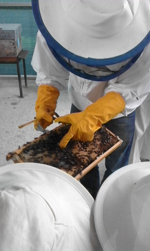 Disfrutamos un montón e fixemos cantidade de tareas, como cociñar unhas riquísimas galletas de mel, , confeccionar unha vela, escoitar un simpático conto relatado por Nico, e, como verdadeiros apicultores, entrar no apiario, en contacto directo coas abellas, despois de poñernos o traxe obrigatorio, para ir protexidos.